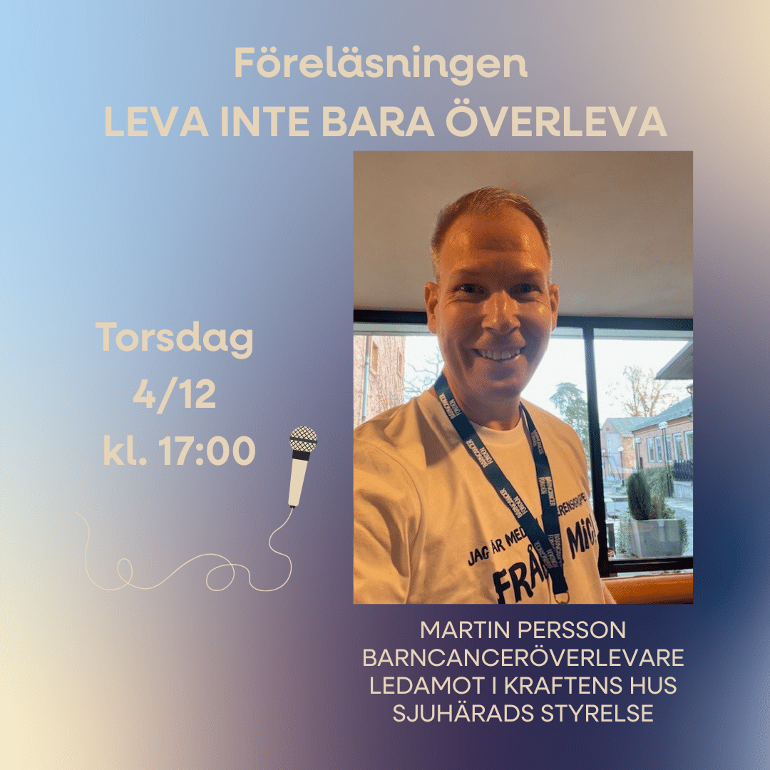 Martin som är barncanceröverlevare kommer till Kraftens hus Sjuhärad och berättar sin livsresa. Martin är idag ledamot av Kraftens hus Sjuhärads styrelse och även i Nätverket mot Cancer.